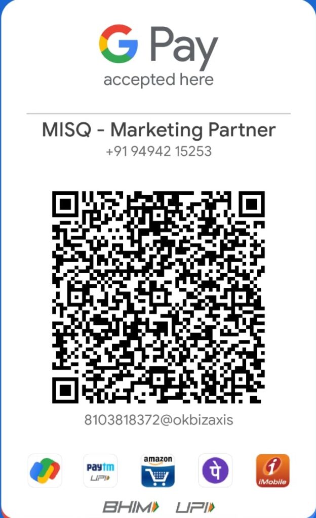 Our Payment Method Bank Details Bank Name: ICICIAccount Name – MISQ Account No.: 777705217253 Bank IFSC code: ICIC0000008 Gpay Razorpay
